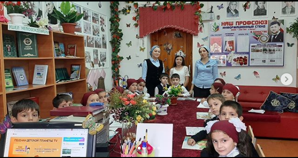 Библиотеку МБОУ «СОШ5» г. Аргун посетили ученики первых классов.