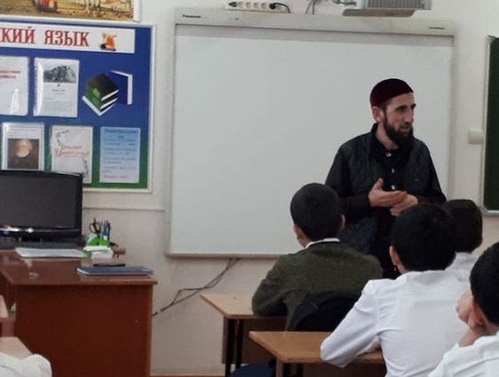 29.01.2020В рамках реализации единой Концепции по духовно- нравственному воспитанию подрастающего поколения Чеченской Республики, Сегодня (29.01.2020г.) для обучающихся 8 классов педагогом-организатором Дельхаевым Р. Р. была проведена профилактическая беседа на тему: «Преступность, наркомания и алкоголизм- явления, чуждые Исламу!»