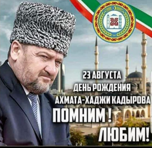 23.08.2020Ассаламу 1алайкум, друзья!Сегодня исполнилось бы 69 лет Первому Президенту Чеченской Республики, Герою России АХМАТУ-ХАДЖИ КАДЫРОВУ (ДАЛА гIазот къобалдойла цуьнан!).Он стал национальным Лидером для всего чеченского народа, который живёт сегодня в мирной и процветающей республике благодаря его отваге, мудрости и дальновидности и вошёл в историю как выдающийся религиозный и политический деятель!В то тяжелое время, когда Чеченская Республика окунулась в хаос, Ахмат-Хаджи, благодаря своей идейной силе, поддерживаемый своей семьей, сыновьями и соратниками вывел многострадальный чеченский народ на истинный, верный путь!Он поставил цель - любой ценой спасти свой народ, загнанный беспощадной войной в руины наших городов и сёл.Истинный мусульманин, чеченец и патриот заложил прочный фундамент, на котором построена современная жизнь Чеченской Республики и её народа.Все существующие сегодняшние достижения и успехи - несомненно баракат и наследие, оставленные нам легендарным АХМАТОМ-ХАДЖИ КАДЫРОВЫМ!!!В нашей памяти навсегда останется Его подвиг во имя спасения своего народа.ДАЛА Г1АЗОТ КЪОБАЛДОЙЛА АХЬМАД-ХЬАЬЖИНА!ДАЛА ДЕКЪАЛВОЙЛА ИЗА!