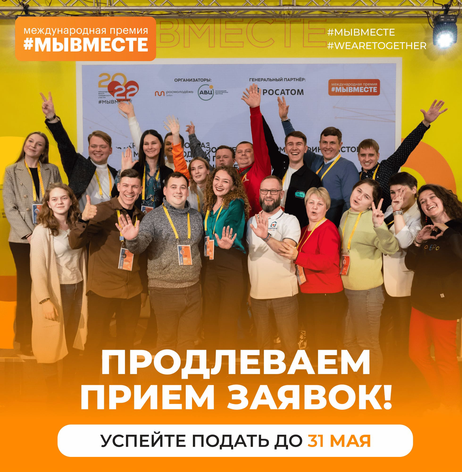 CРОК ПРИЕМА ЗАЯВОК НА ПРЕМИЮ #МЫВМЕСТЕ ПРОДЛЕН ДО 31 МАЯ
