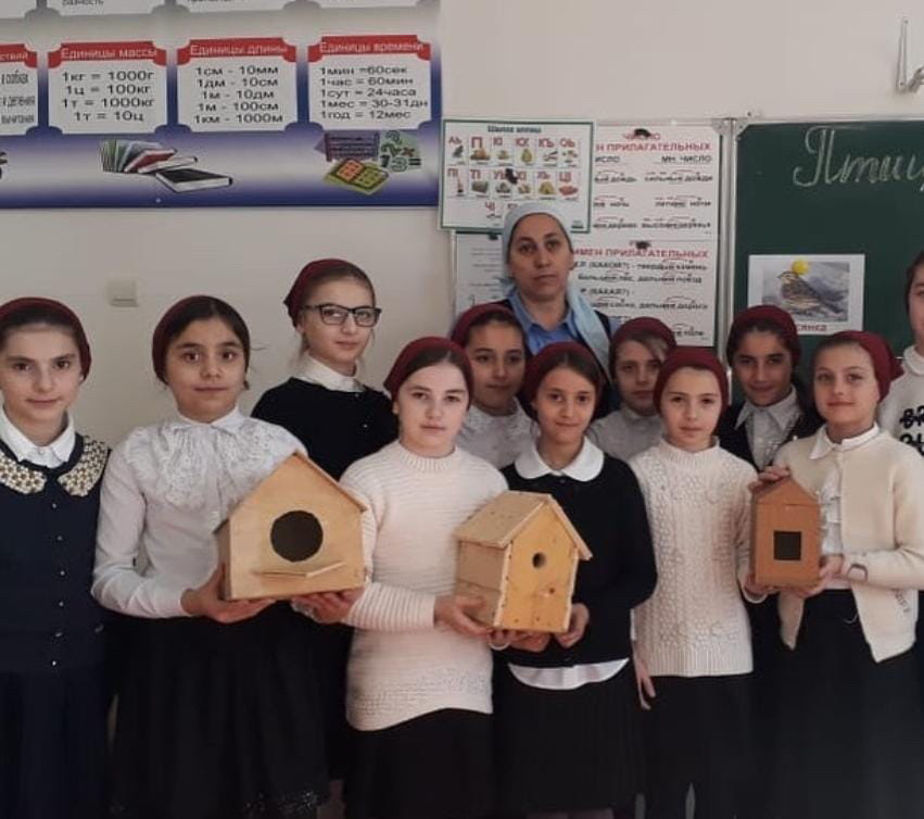 Обучающиеся МБОУ " СОШ №5" г. Аргун им. М. Б. Халикова инсценированный небольшой поход , с вывешиванием кормушек для птиц