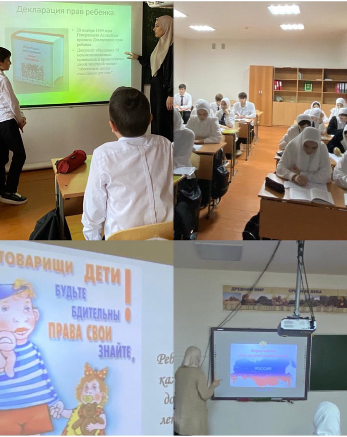 В ходе беседы дети познакомились не только со своими правами, но и обязанностями. Учитель обществознания и историй Дадаева А.Я. рассказала ребятам о истории создания и принятия очень важного документа- "Конвенция о правах ребёнка".