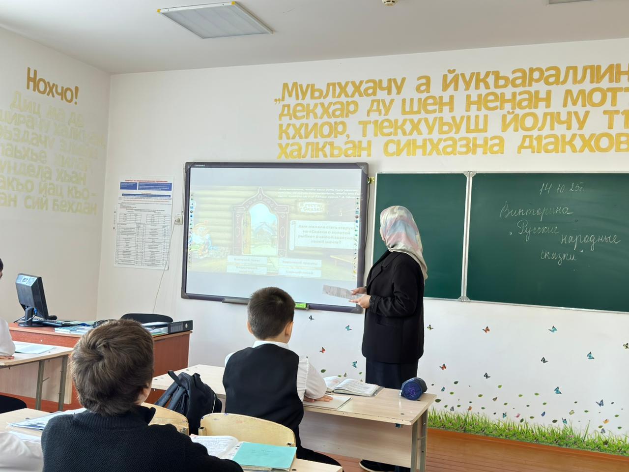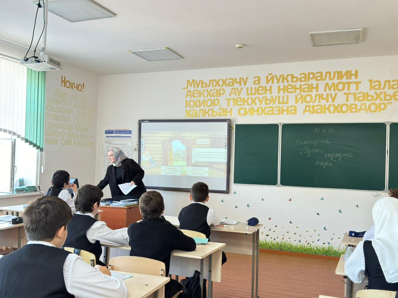 14.10.2025 в МБОУ «СОШ№5» им.М.Б.Халикова библиотекарь Додуева Э.А. провела познавательную игру «Русские народные сказки» с учащимися 5-х классов