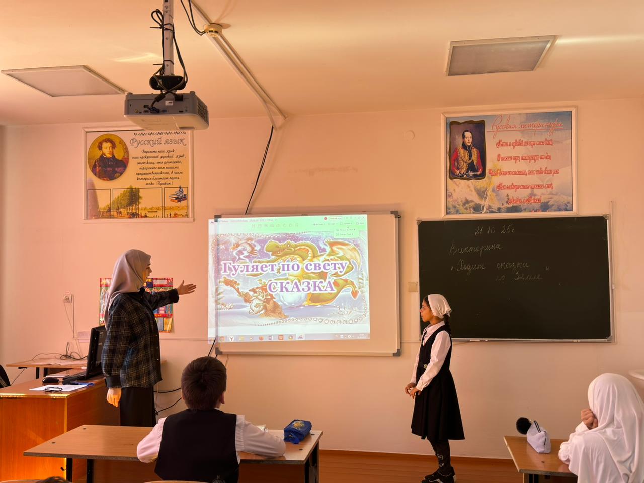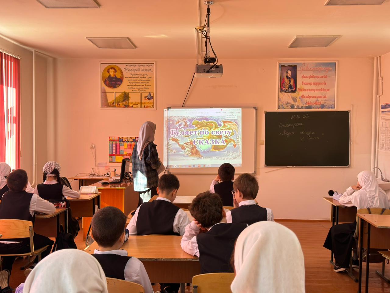 В МБОУ «СОШ№5» г.Аргун им.М.Б.Халикова была проведена викторина «Ходит сказка по Земле» приуроченное ко дню школьных библиотек.