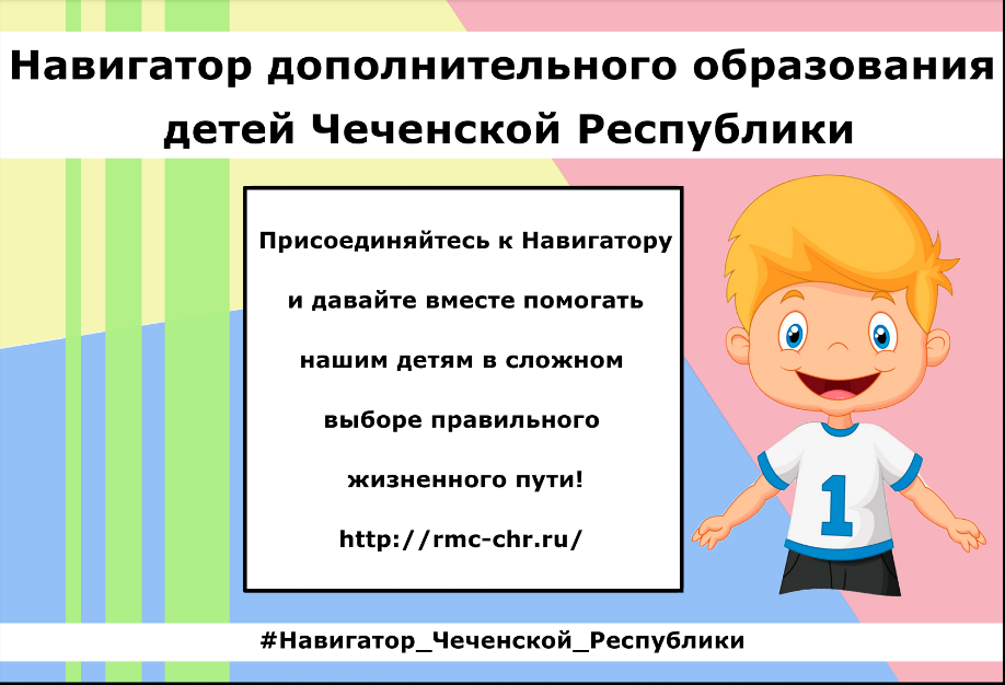 19.03.2019В Чеченской Республике начинает работу навигатор по дополнительным общеобразовательным программам для школьников. Навигатор дополнительного образования - это единая база кружков, секций, объединений различной направленности для детей всех возрастов. Каждый сможет найти занятие по душе, исходя из собственных предпочтений, пожеланий и способностей. Портал создан на технологиях Inlearno, в рамках приоритетного проекта "Доступное дополнительное образование для детей".Присоединяйтесь к Навигатору и давайте вместе помогать нашим детям в сложном выборе правильного жизненного пути! http://rmc-chr.ru/ #Навигатор_Чеченской_Республики